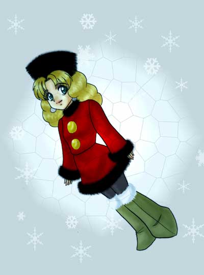 「4」に出て来るコサック博士の娘、カリンカ嬢です。 前に描いた物に色付けしてみました。 公式絵を真似ようとしましたが無理でした。自分絵だと可愛さが出ません。 マウスを当てると微妙な変化アリ。 永久凍土なお国っぽいお名前なので氷の妖精イメージにしたかったのですが、 水没してるようにしか見えませんね(笑)。